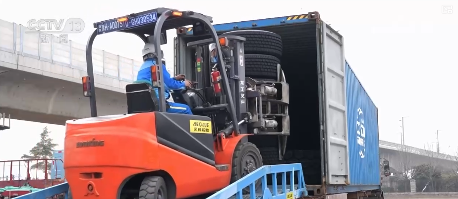 泛爱县的一家轮胎企业时记者来到位于河南焦作,的“出口第一单”打包装箱工人们正正在为2026年。