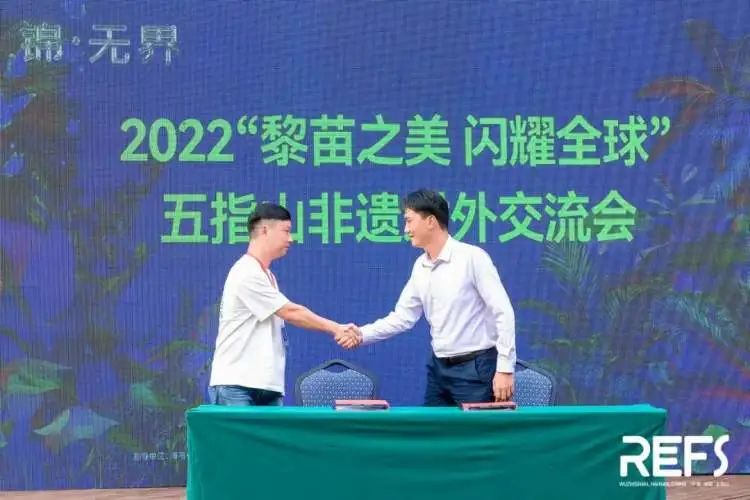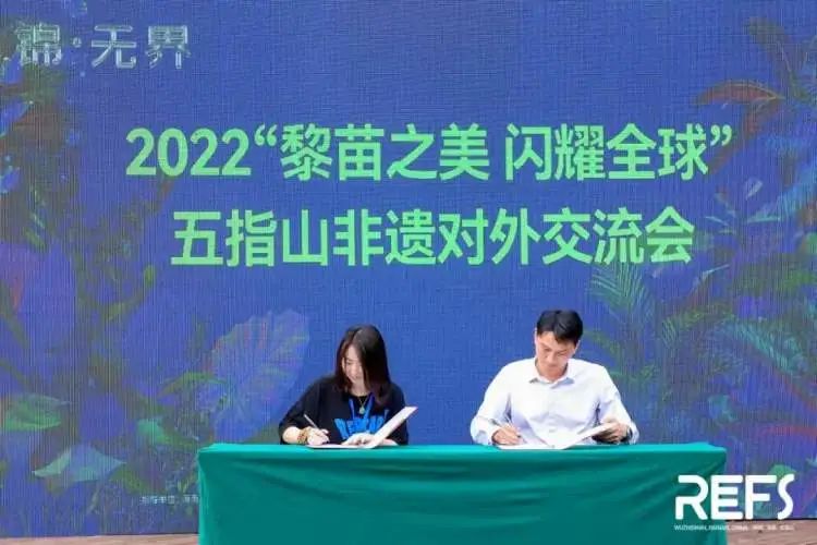 会上交换,月、Donoratico 达衣岩品牌代表进行签约典礼五指山市旅游和文明广电体育局局长陈海东与TUYUE涂,上浓墨重彩的一笔为非遗文明交换添。