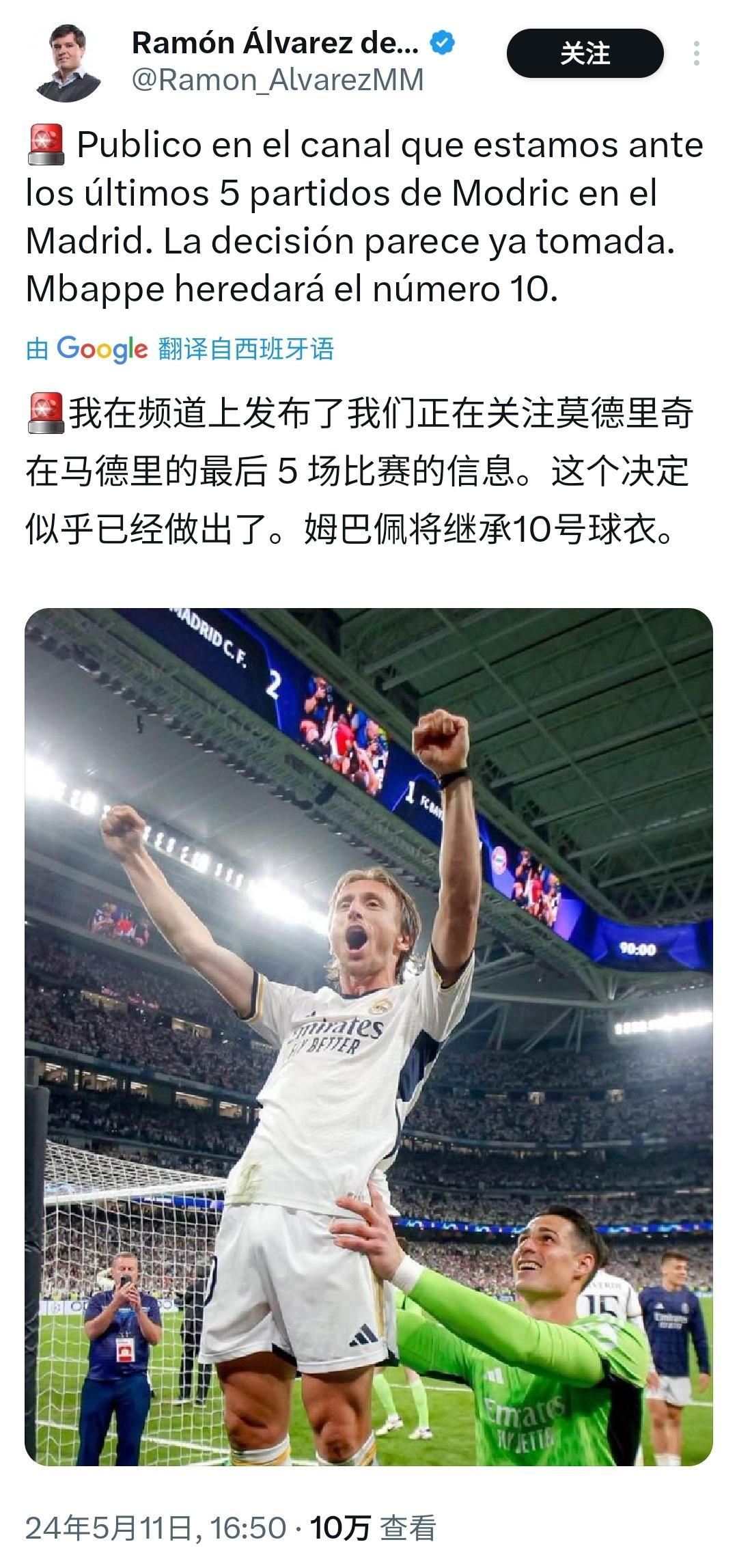 lvarez报道称记者Ramón Á,皇马的最终5场角逐莫德里奇将迎来他正在,曾经做出断定坊镳,他的10号球衣姆巴佩将接受。