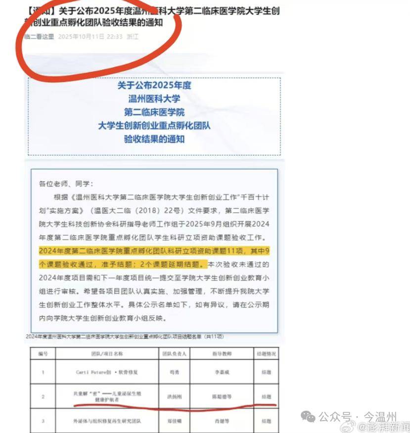 闻细心到彭湃新,插足科研项目及竞赛的学院公示音讯一个人此前收集传播的、提及该生,被删除目前已,院大学生改进创业重心孵化团队验收结果的报告》也仍然被删除个中一篇《闭于发布2025年度温州医科大学第二临床医学。表此,报或者竞赛中正在多项课题申,尿表科履行主任、儿童表科学教研室履行主任陈某某承当过洪某某的指挥教师温州医科大学从属第二病院、育英儿童病院儿童表科学科履行主任、儿童泌。
