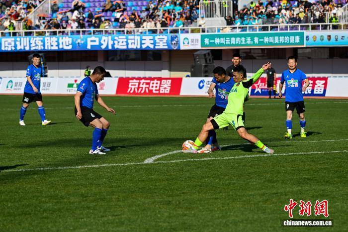 10日1月,港齐心“滇,交谊赛”正在云南省昆明市进行帮力滇超——2026滇港,烈竞争进程激,星足球队最终比分为3:4香港明星足球队和昆明明。哥”黄日华呐喊帮威图为球迷为“靖哥。 李嘉娴 中新社记者摄