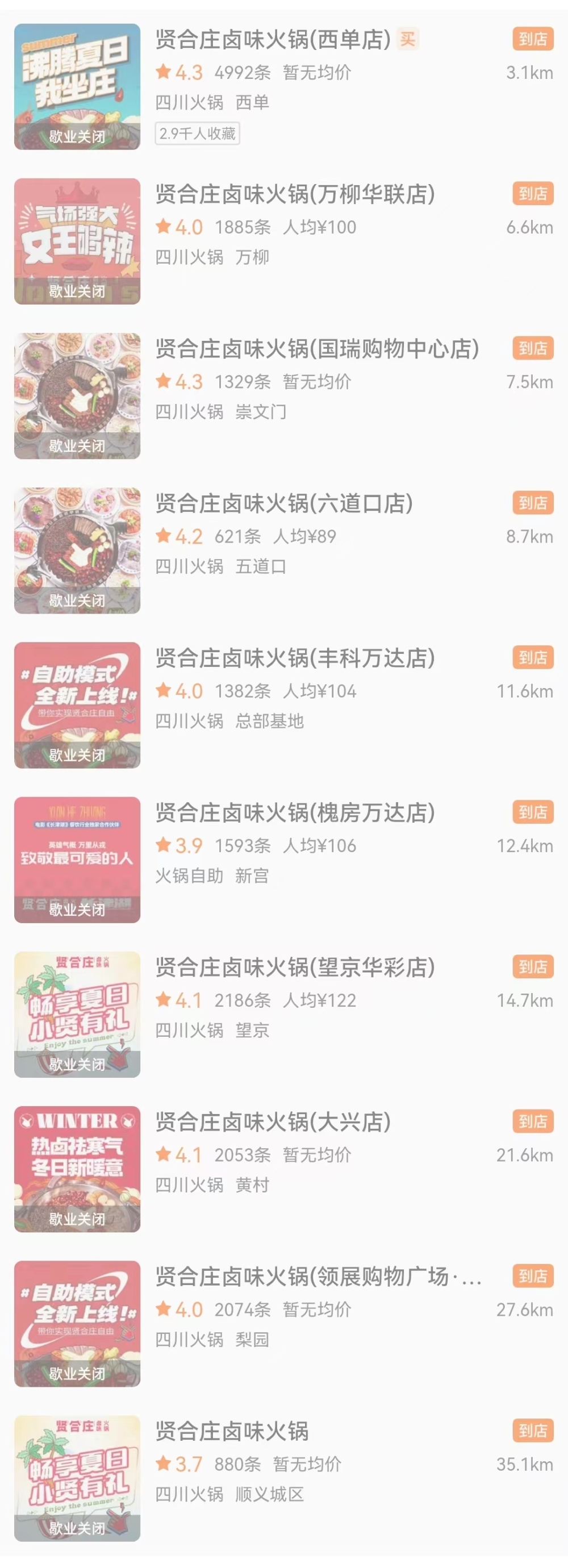 改为上海和成都记者将定位辨别xg111企业邮局索“贤合庄”正在上述平台搜,1家门店均显示“歇业闭上”目前上海的5家门店和成都。表另,广场店)也已显示歇业广州的贤合庄(百信。