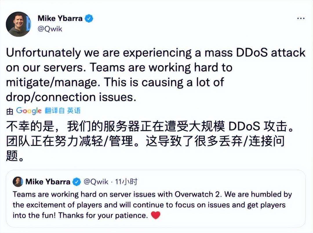 方面另一,当天即碰到了DDoS攻击《守望前锋:返来》正在上线,交媒体网站上颁发了受到DDoS攻击的信息暴雪总裁Mike Ybarra 也正在其社,师连夜抵造DDoS攻击并默示他们一经机合工程。