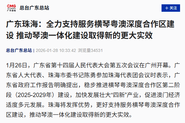 五次集会正在广州举办广东省十四届人大,海市委书记陈勇出席珠海代表团集会时的言语中心播送电视总台闭怀广东省人大代表、珠,道称报,施展上风珠海将,粤澳深度合营区修筑更好援手任职横琴,设博得新的更大实效胀吹琴澳一体化修。