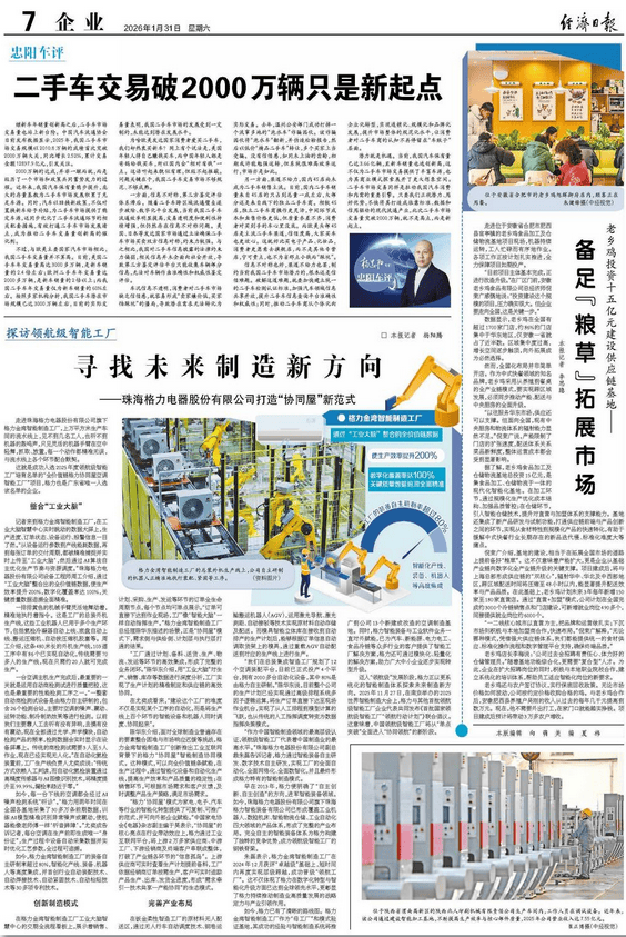 份有限公司旗下格力金湾智能创设工场《经济日报》记者走进珠海格力电器股,、完美资产组织等方面来对其实行先容从整合“工业大脑”、立异创设形式,道称报,级”进展阶段迈入“领航,造系统找寻另日创设新对象格力正以更编造化的智能造。